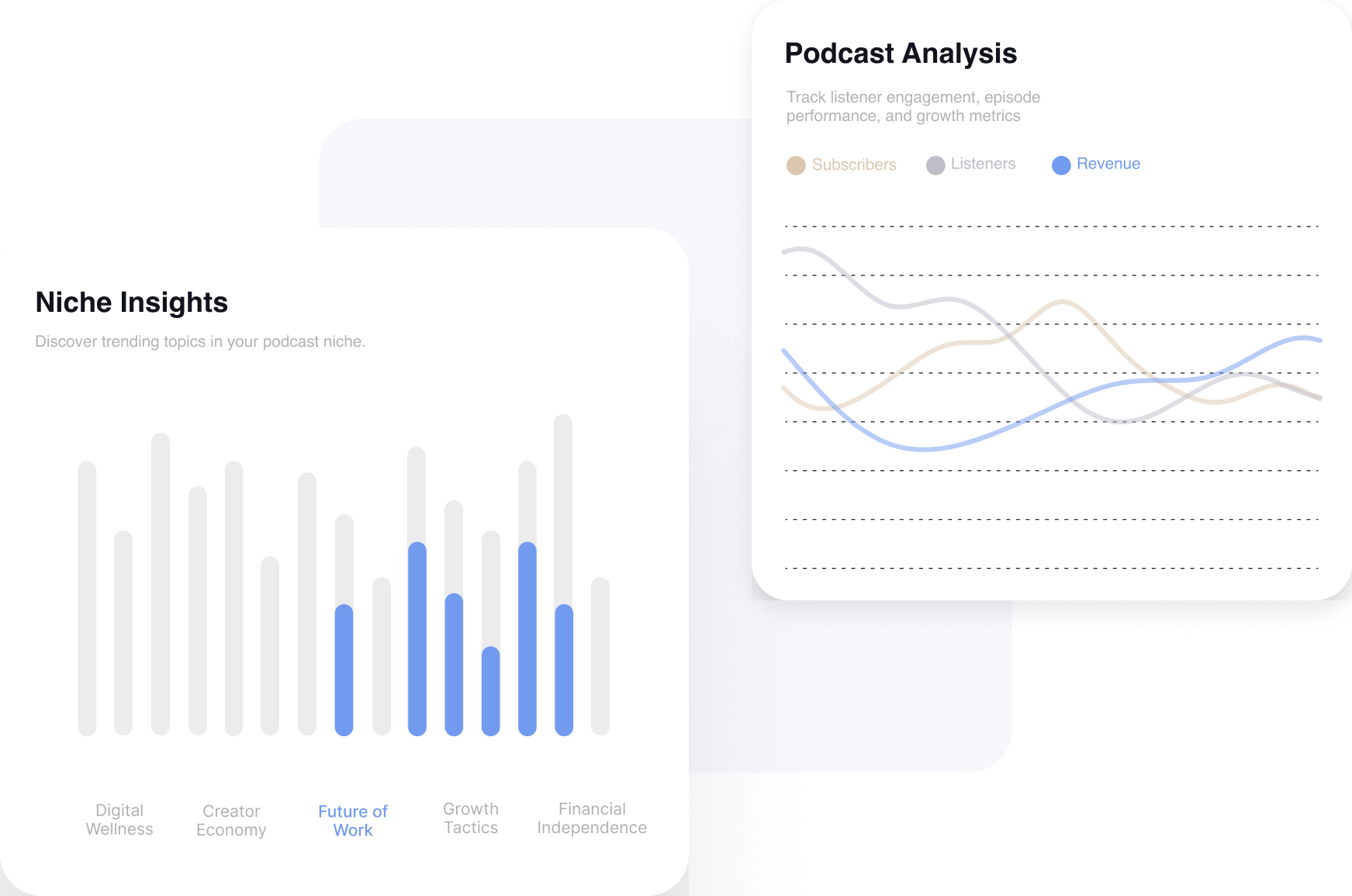 Gain deep insights into your podcast’s performance with real-time analytics, audience behavior tracking, and AI-powered recommendations to grow your show.